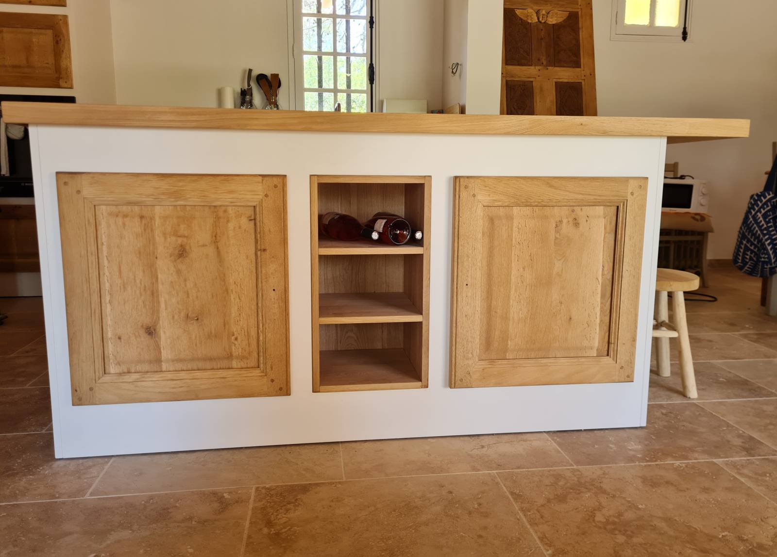 Nos prestations incluent la création de cuisines équipées en bois massif, offrant robustesse et élégance intemporelle.