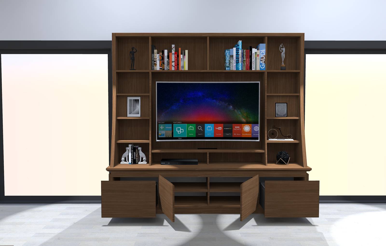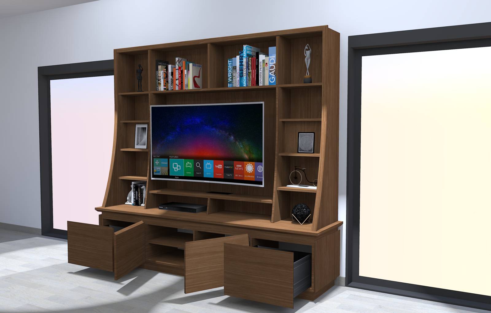 Si vous avez un projet d'agencement intérieur proche d'Annecy n'hésitez pas à nous contacter afin que nous vous proposions des vues 3D réalistes comme pour cette bibliothèque sur mesure.