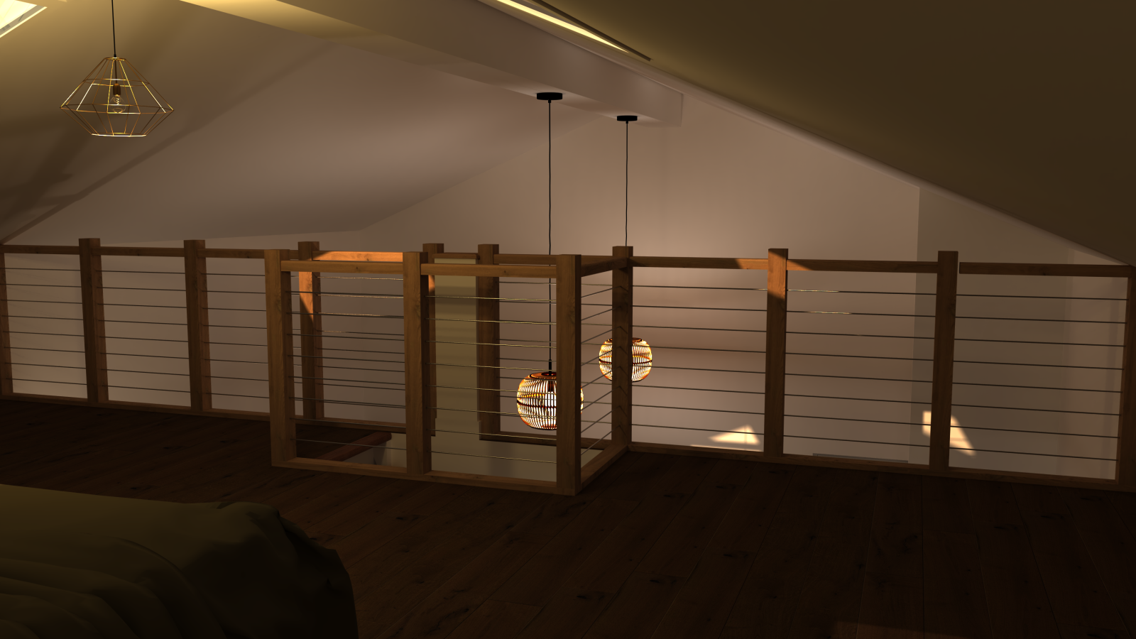 À Genève, Le Maillet Bleu a été sollicité pour imaginer, fabriquer et installer un garde-corps en bois massif sur mesure, destiné à protéger une mezzanine dans une chambre familiale. L’objectif : sécuriser l’espace pour les enfants tout en créant une pièce esthétique et harmonieuse. Pour répondre à cette exigence, nous avons proposé une structure élégante en châtaignier massif, associée à des câbles inox pour un rendu contemporain et aérien.