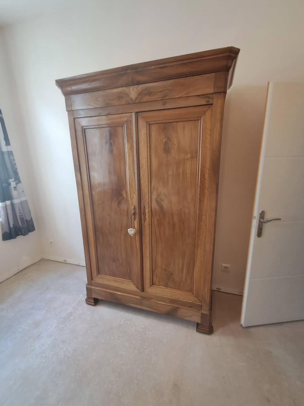 Cette rénovation permet à l'armoire de style Louis Philippe de retrouver toute sa splendeur, prête à intégrer à nouveau un intérieur élégant et raffiné. Son charme d’antan et sa solidité restaurée en font un meuble de caractère, capable de traverser les décennies avec grâce.